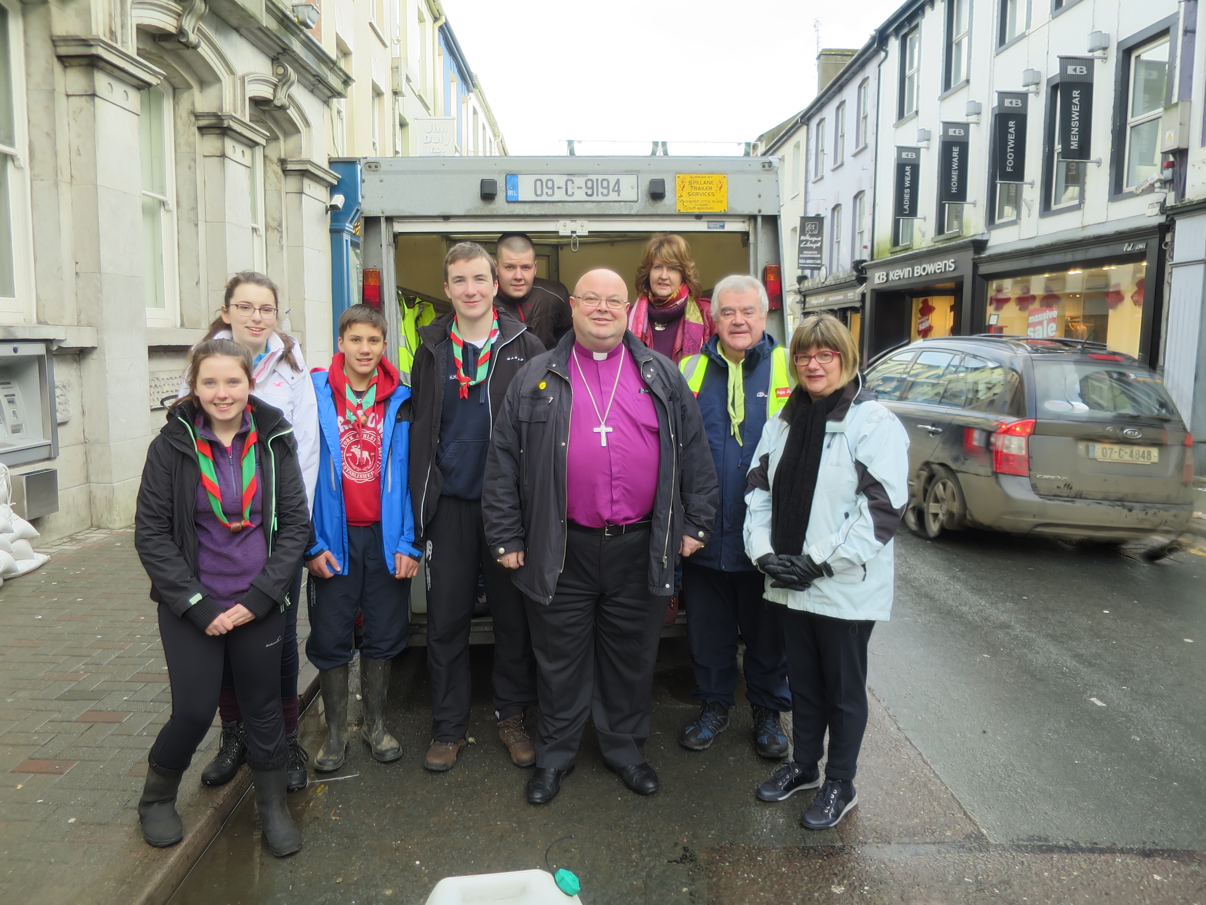 With the scouts of Bandon who had set up a food station – soup, tea, coffee, bread, sandwiches in bandon town, as well as helping with sand bags.